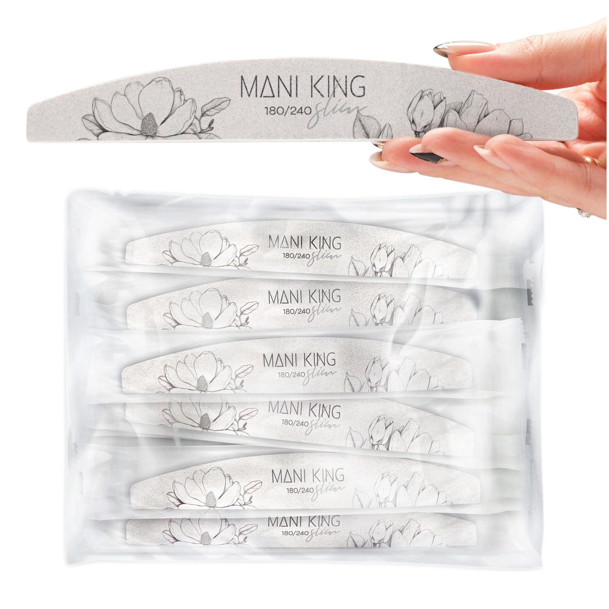 MANI KING Mineralny Pilnik do paznokci FLORA PÓŁKSIĘŻYC 180/240 Slim BEZPIECZNY PAKIET - 25 szt.