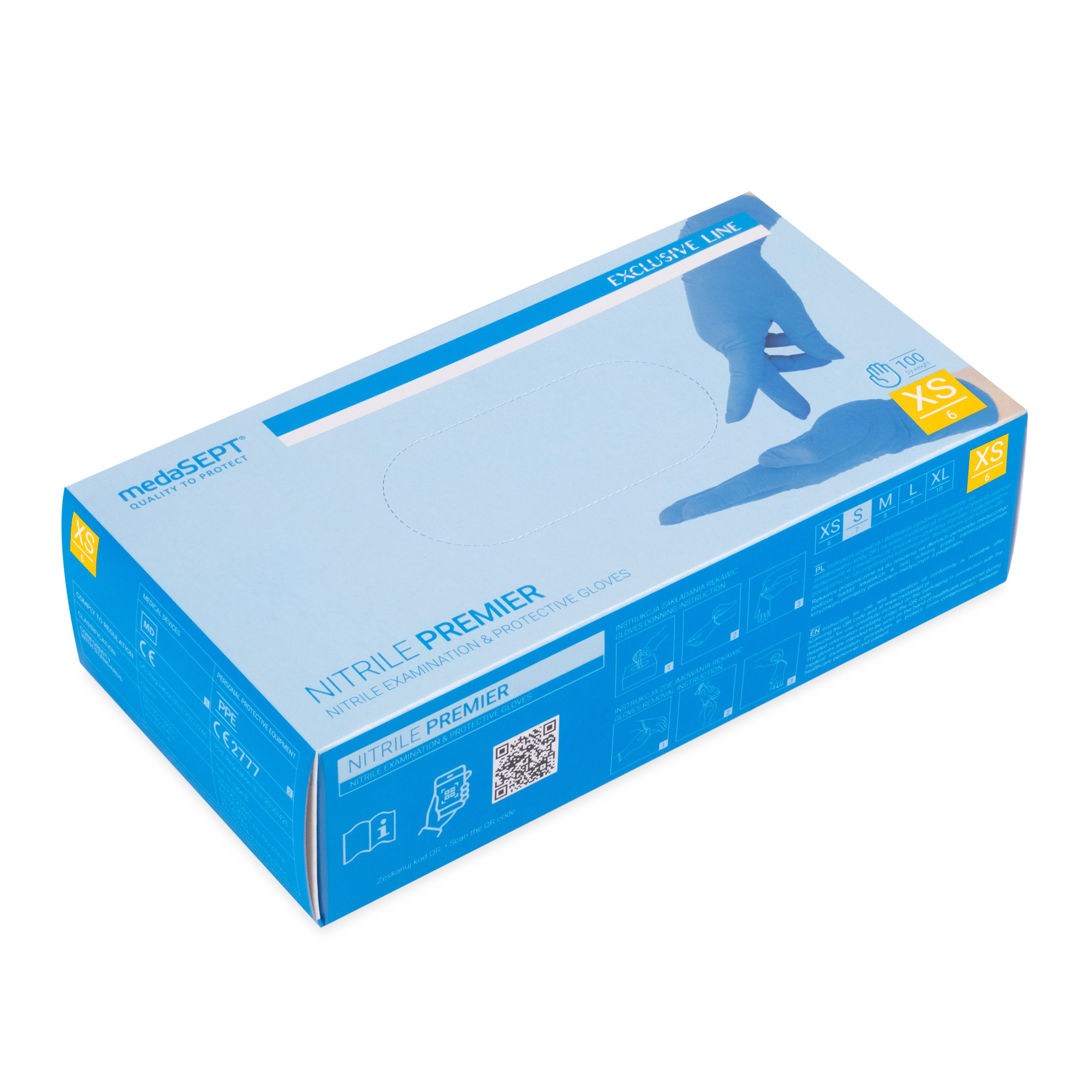 medaSEPT NITRILE PREMIER XS rękawice diagnostyczne, nitrylowe bezpudrowe, niebieskie 100 szt