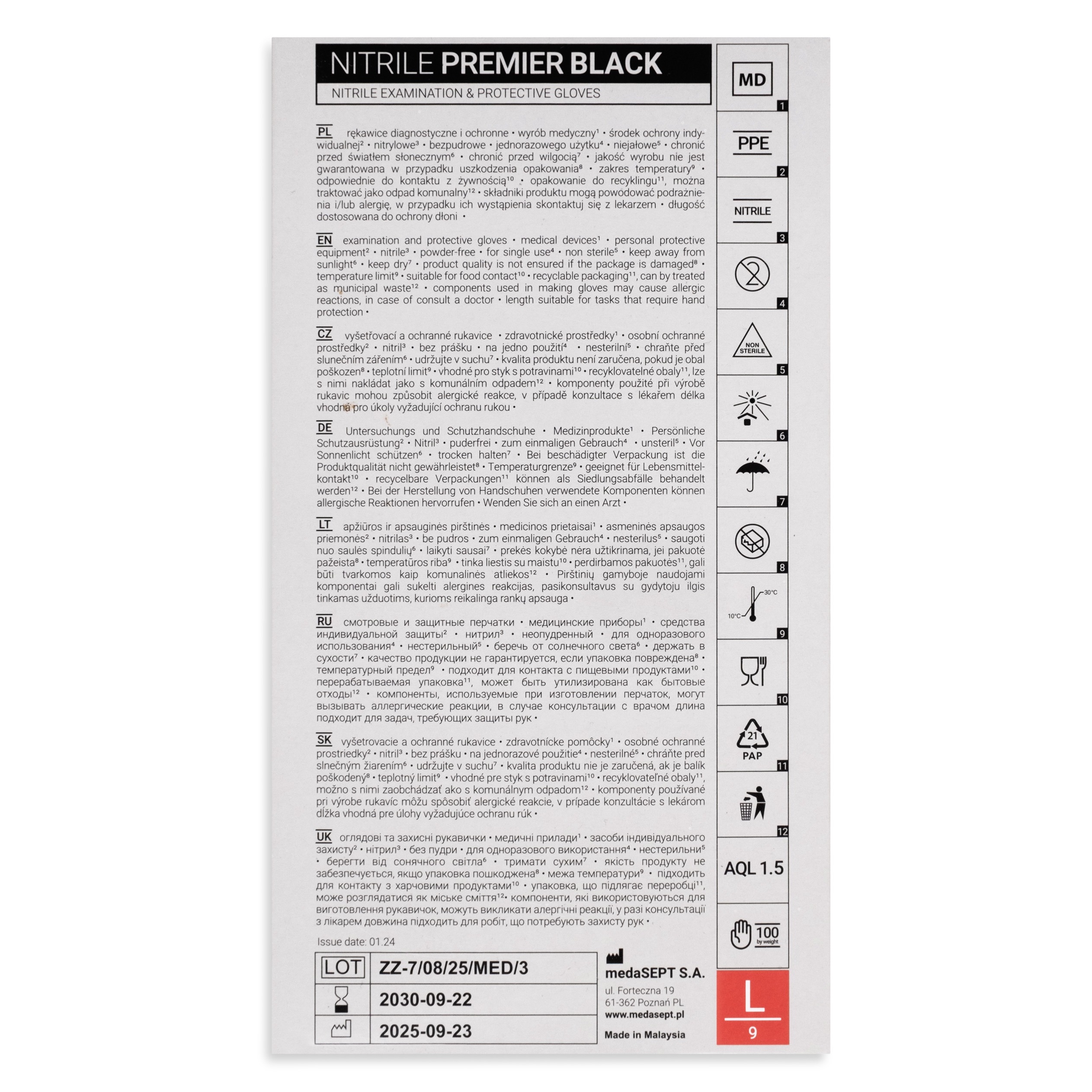 medaSEPT NITRILE PREMIER L rękawice diagnostyczne, nitrylowe, bezpudrowe, czarne 100 szt.