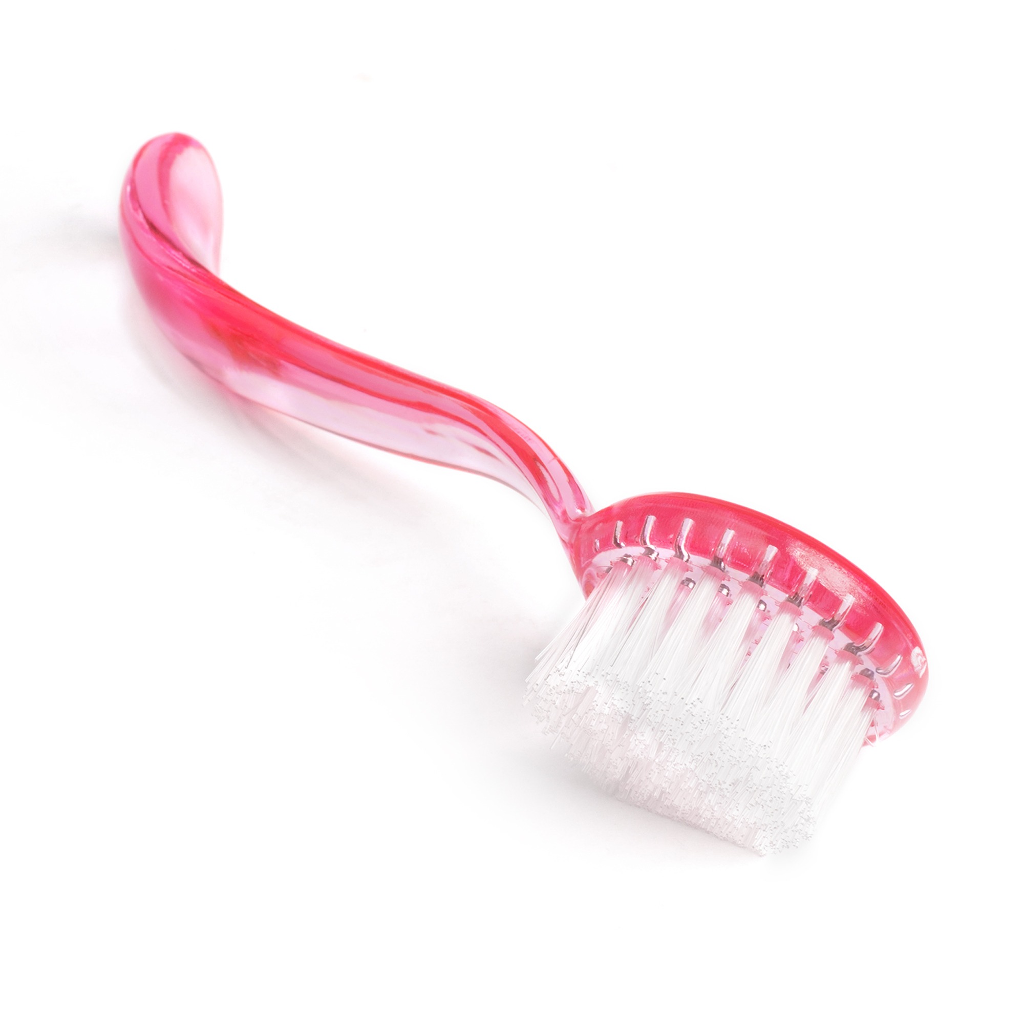 Szczoteczka do paznokci i pyłu, okrągła z rączką - różowa